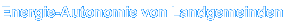 In ländlichen Gemeinden ist Energie-Autonomie (ausschließliche Versorgung durch lokale, erneuerbare Energiequellen) einfach zu bewerkstelligen. Der richtige Energiemix (Wind, Biogas, Sonne, Holz) und gut durchdachte Finanzierungskonzepte (oft mit Bürgerbeteiligung) haben mehr als 20 Gemeinden im Umkreis von Freiburg bereits dorthin geführt. Sowohl die technischen, als auch die finanziellen und politischen Aspekte des Wegs dorthin können wir mit den Fachleuten vor Ort für Sie beleuchten.